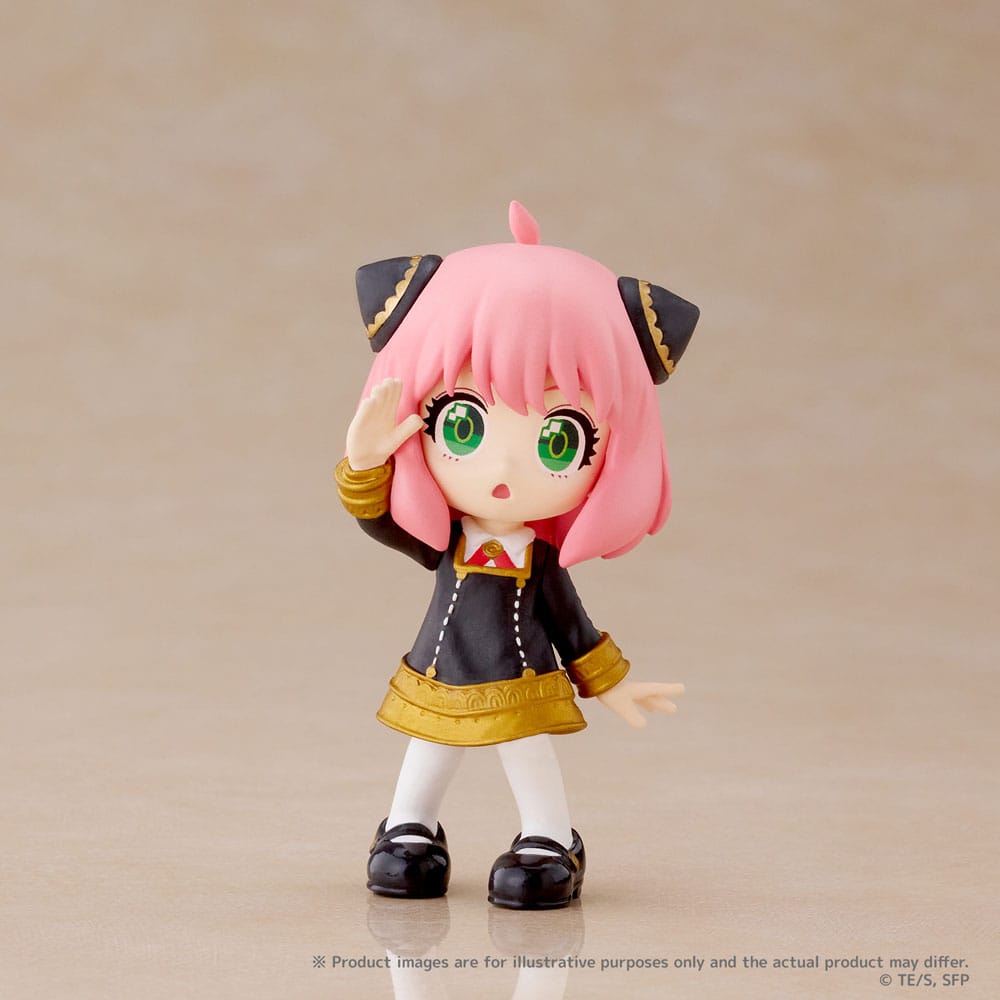 Cada mini figura mide aproximadamente 9 cm y presenta un diseño chibi lleno de detalle y color. La colección incluye a Anya Forger en tres versiones diferentes, Loid Forger, Yor Forger, Bond Forger y una figura secreta por descubrir.