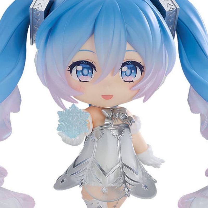 Con una altura de 10 cm, esta versión de Miku luce un encantador atuendo plateado con reflejos azulados y un diseño inspirado en la nieve y el brillo del invierno. Su expresión alegre y los tonos suaves de su cabello recrean perfectamente el ambiente mágico del evento.