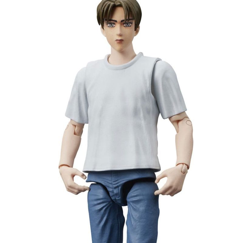 Con una altura aproximada de 7 cm, esta figura recrea al legendario piloto del AE86 Trueno con su clásico atuendo: camiseta blanca, pantalones vaqueros y zapatillas deportivas, transmitiendo su estilo relajado fuera del volante.