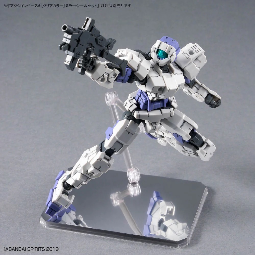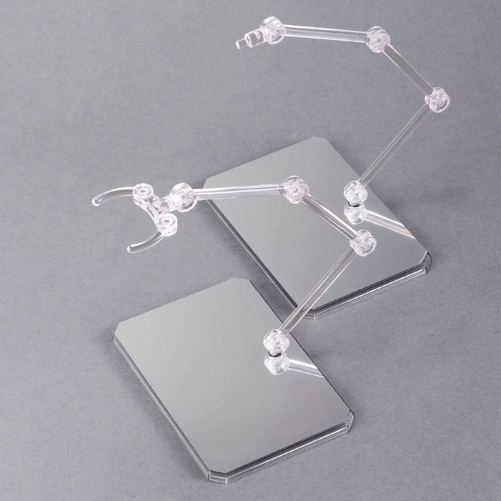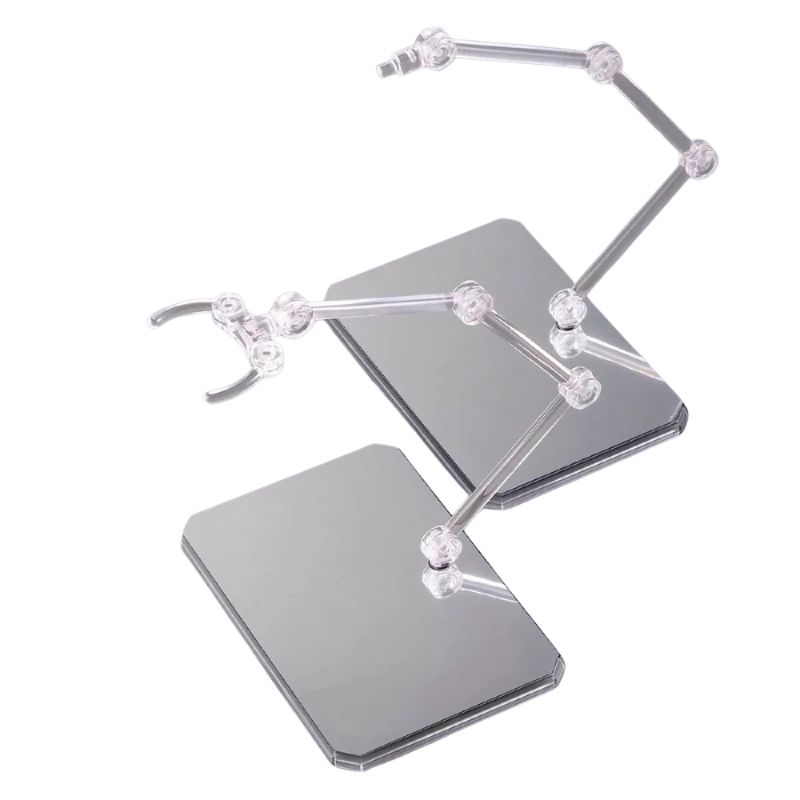 La Action Base 6 Clear Mirror Stickers Set es una base transparente diseñada por Bandai para exhibir model kits y figuras con mayor estabilidad y estilo.