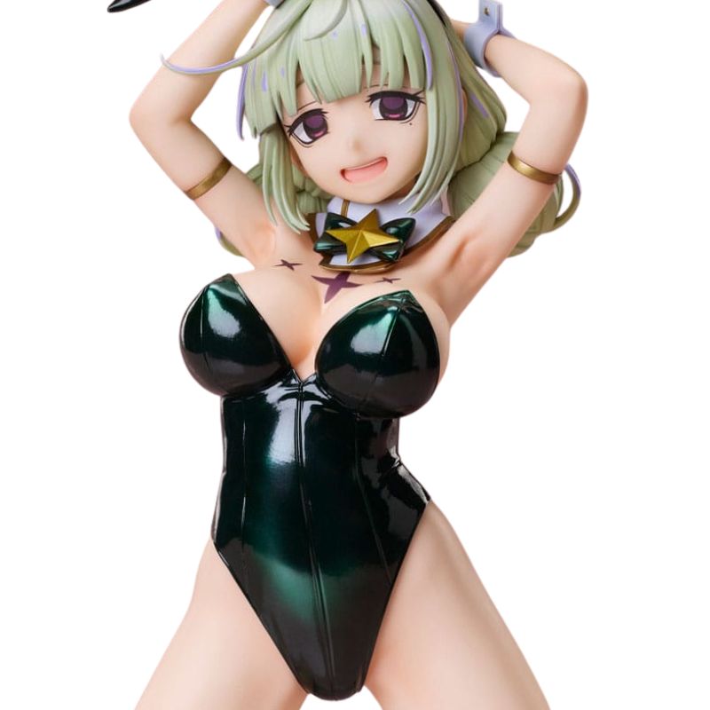 Con un elegante traje de conejita en acabado brillante y una pose llena de confianza, esta figura resalta cada detalle del diseño original, desde la expresión coqueta hasta los accesorios temáticos.