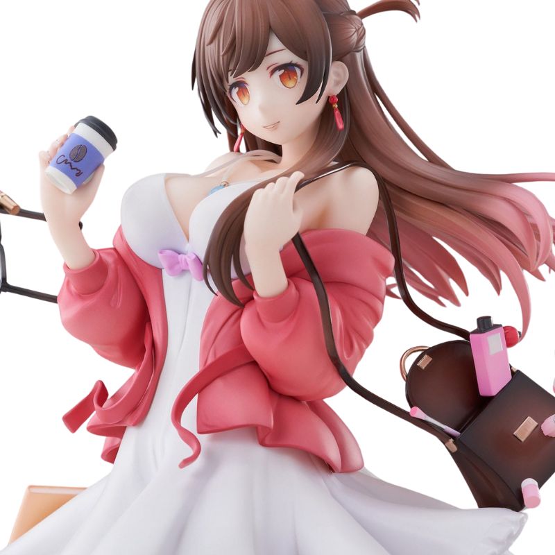 Con 22 cm, la figura destaca por los accesorios que acompañan a Chizuru, desde la chaqueta rosa hasta las bolsas de compras, transmitiendo su estilo moderno y seguro. Su expresión dulce y el esculpido del cabello añaden un toque de naturalidad.