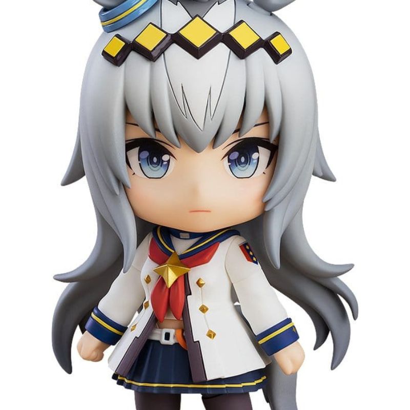 Con una altura aproximada de 10 cm, Oguri Cap luce su uniforme escolar característico, orejas y cola incluidas, junto a una expresión seria que refleja perfectamente su personalidad.