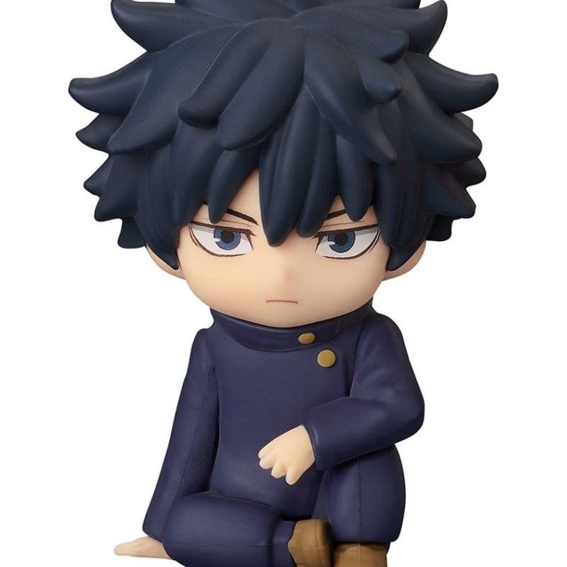Con una altura aproximada de 8 cm, Megumi aparece sentado con su expresión característica y uniforme escolar, reinterpretado en un formato chibi muy reconocible.
