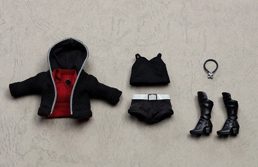 El diseño destaca por la expresión seria, el peinado plateado cuidadosamente esculpido y la silueta estilizada propia de la línea Nendoroid Doll.