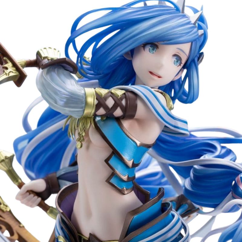 Esculpida a escala 1/7 y con 25 cm de altura, Dana aparece en plena acción empuñando sus icónicas espadas curvas Crescent, con su cabello azul fluyendo dinámicamente. La composición transmite movimiento, elegancia y determinación, fiel al espíritu del juego.
