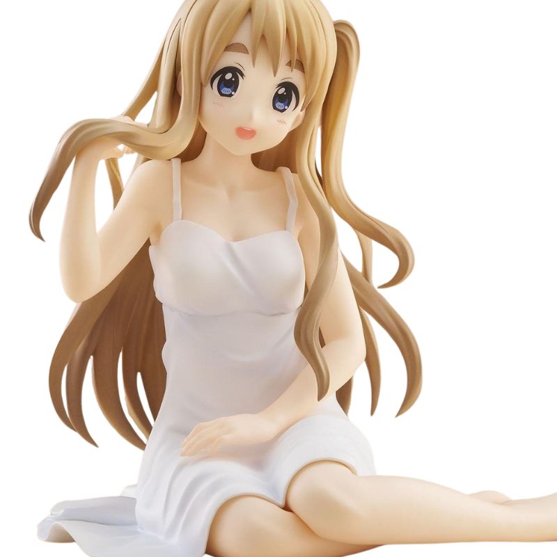 Con una altura aproximada de 12 cm, esta estatua presenta a Mugi sentada con un delicado vestido blanco, mostrando su expresión dulce y alegre.