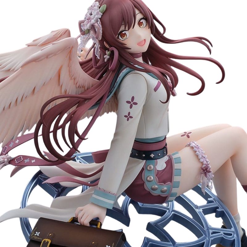 Sus alas con acabado perlado y detalles brillantes destacan junto al cabello y la falda esculpidos con movimiento, aportando una sensación dinámica y premium. Los accesorios, lazos y volantes completan una figura llena de volumen y detalles.